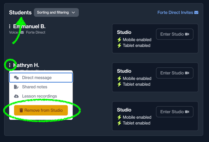 You can change which student(s) has access to your Forte teaching Studio via your Basic or Pro membership!