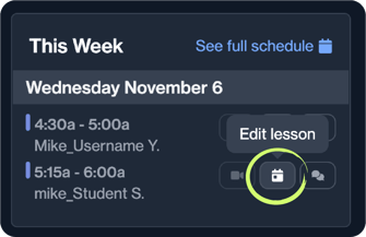 Once in your calendar, select the lesson you want to edit by clicking on it.