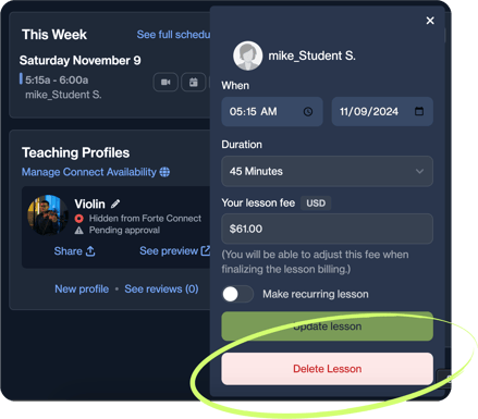 Once the lesson is canceled, your student will automatically receive an email notifying them of the cancelation.