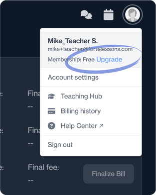 - In your Forte Teaching Hub, navigate to your profile picture in the top right corner. Click Upgrade.