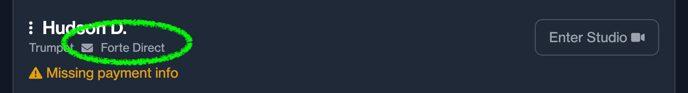 Is your Forte Direct student listed as "Missing payment info?" Don't worry! "Missing payment info" just means that your student hasn't yet attached a payment method to their Forte account, so you are unable to use Forte Billing with this student to bill for lessons taught.