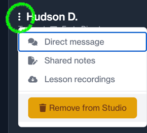 Direct Message, Shared Notes, Lesson Recordings, Remove from Studio