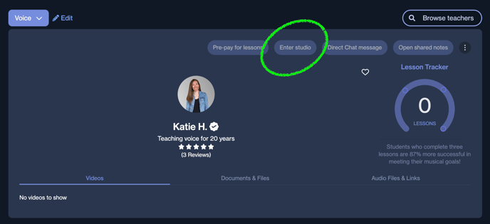 You can enter a lesson with your teacher directly from your Learning Hub. Click "Enter studio" to join your teacher in the Forte teaching Studio for your Trial Lesson!
